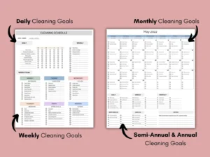 The key is to start simple. Begin with basic daily tasks and a light weekly cleaning checklist, then expand your planner as habits become easier. Over time, you’ll naturally create a cleaning system that feels effortless rather than stressful.
