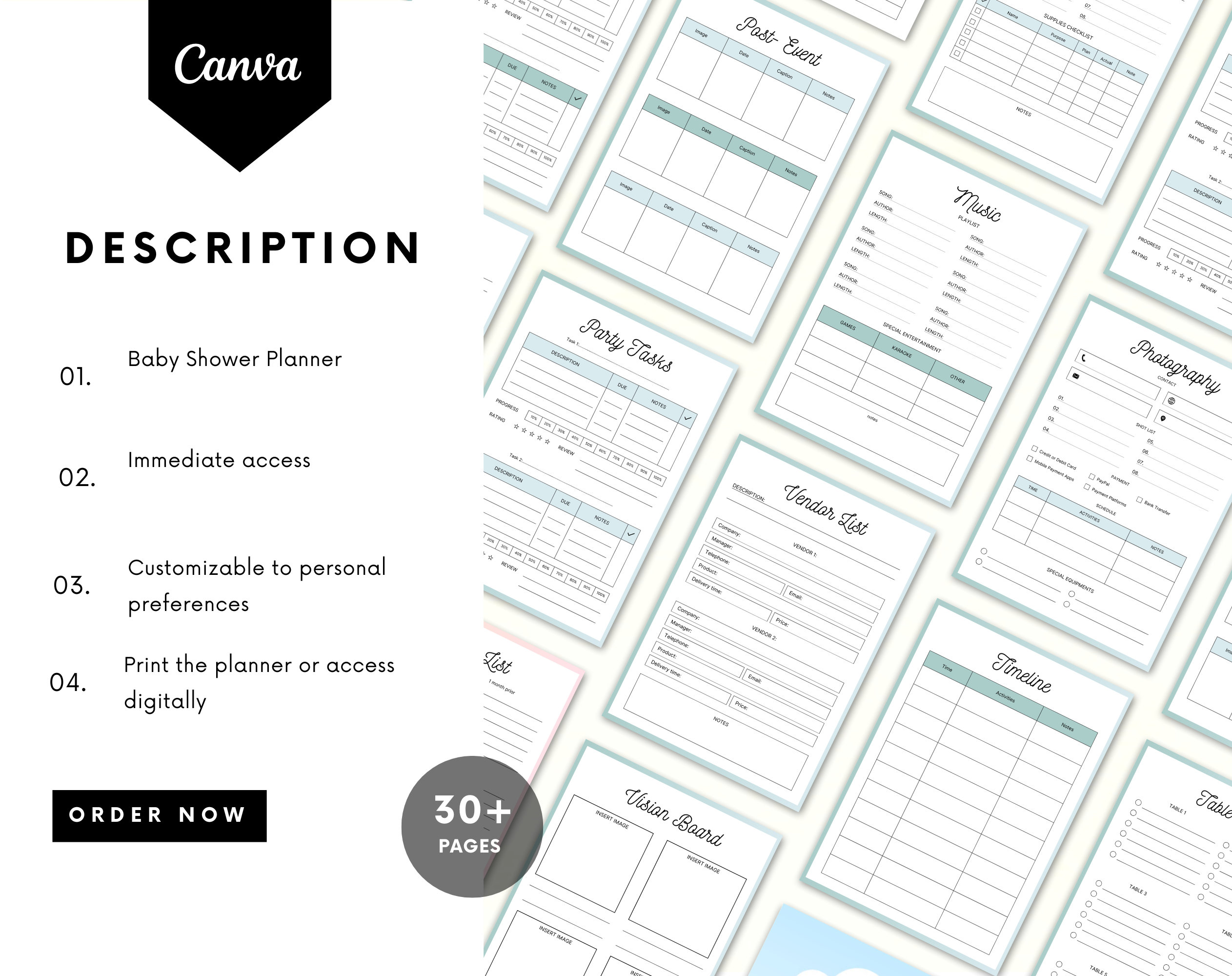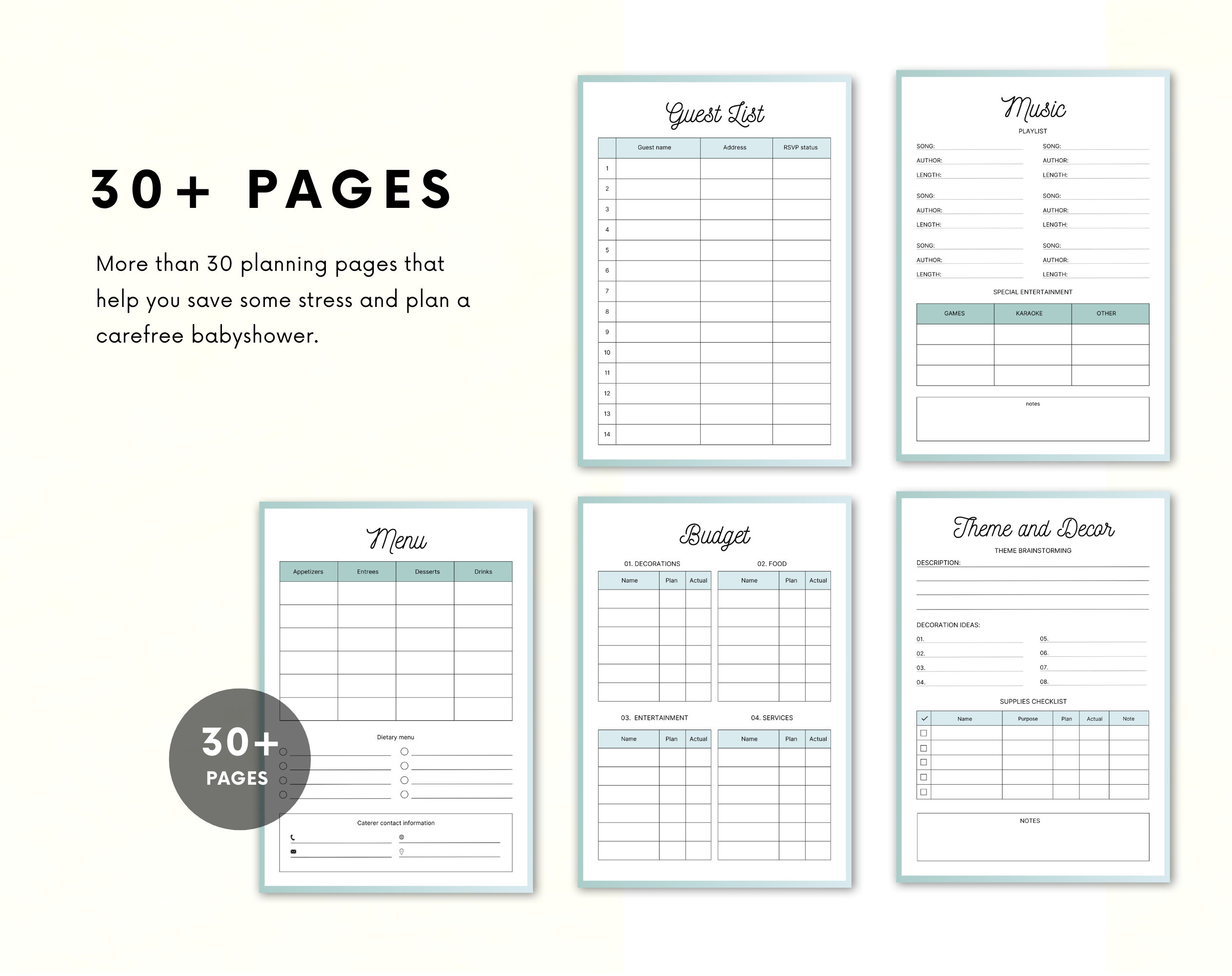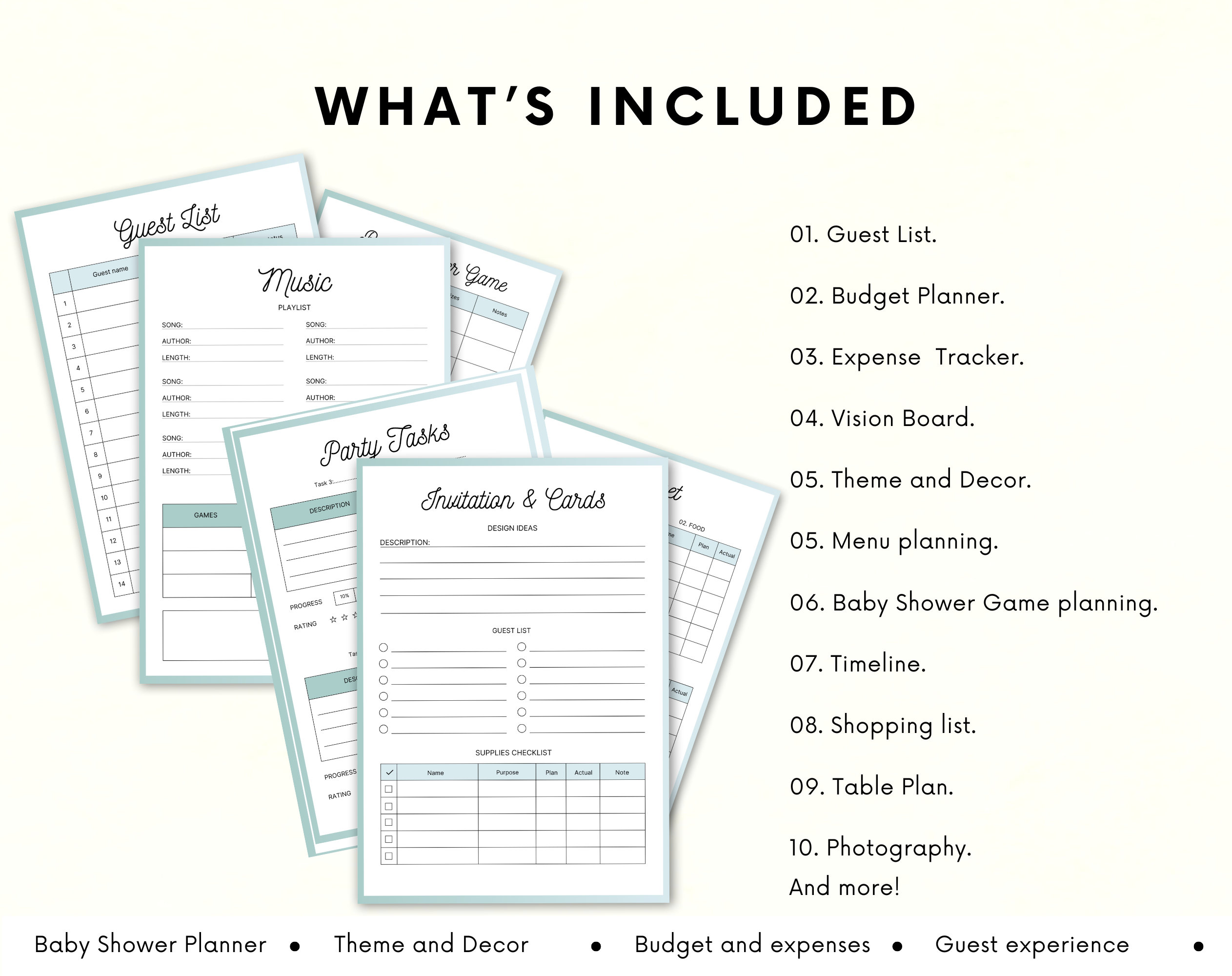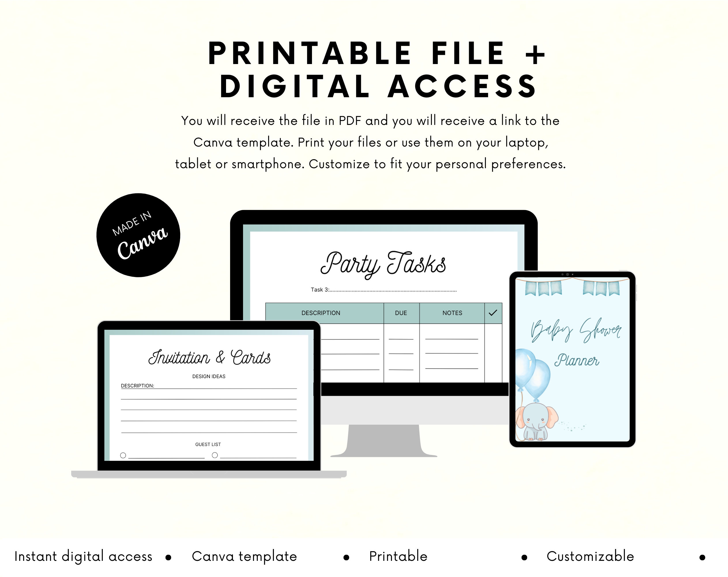 ♦ You will receive a printable PDF file of the Baby Shower Planner.