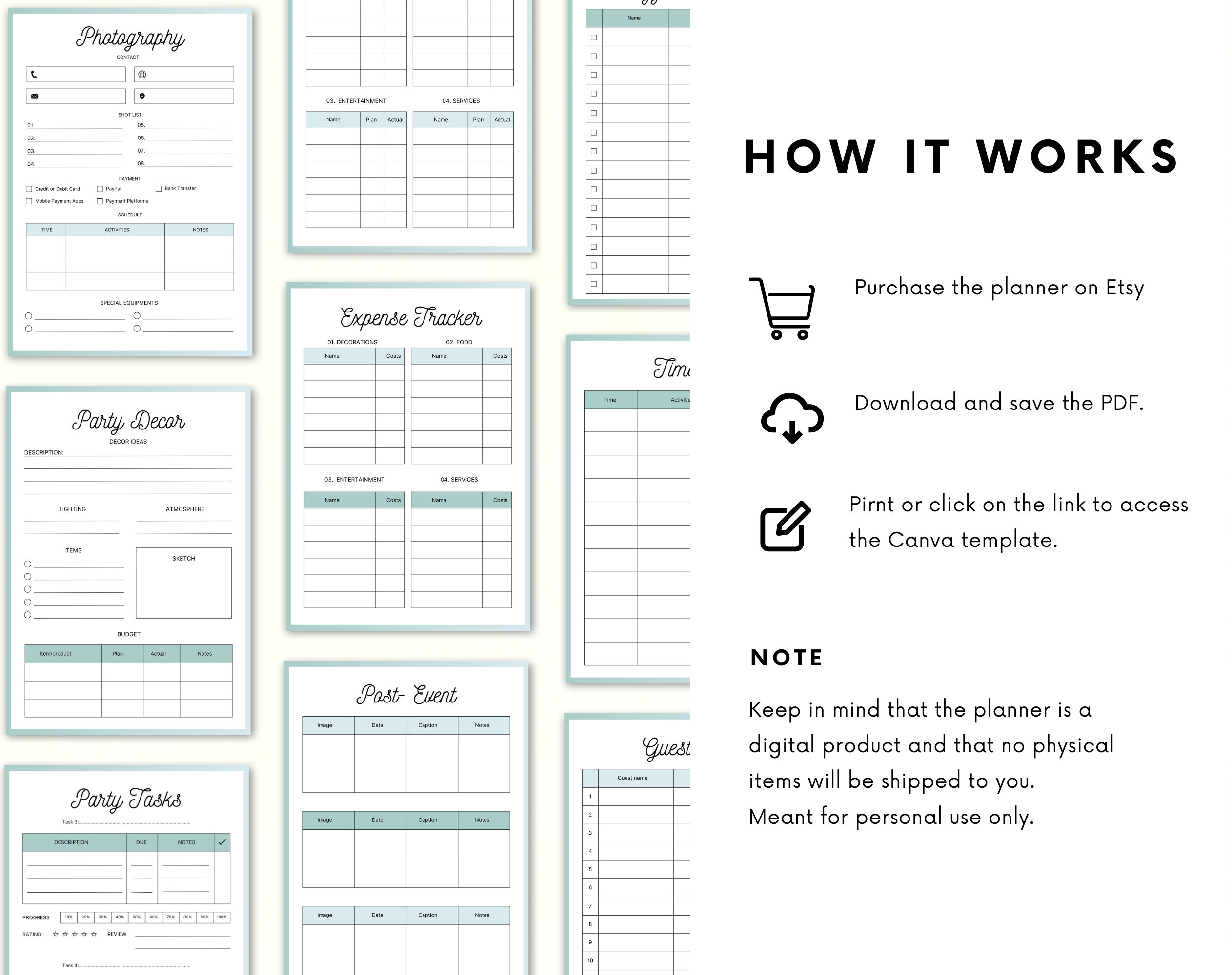 Can’t wait to start? We got you! Start planning right away with instant acces to the Digital PDF file and instant access to the Canva template.
