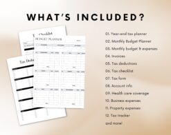 Stay organized and on top of your finances with our comprehensive Tax Planner and Budget Planner.