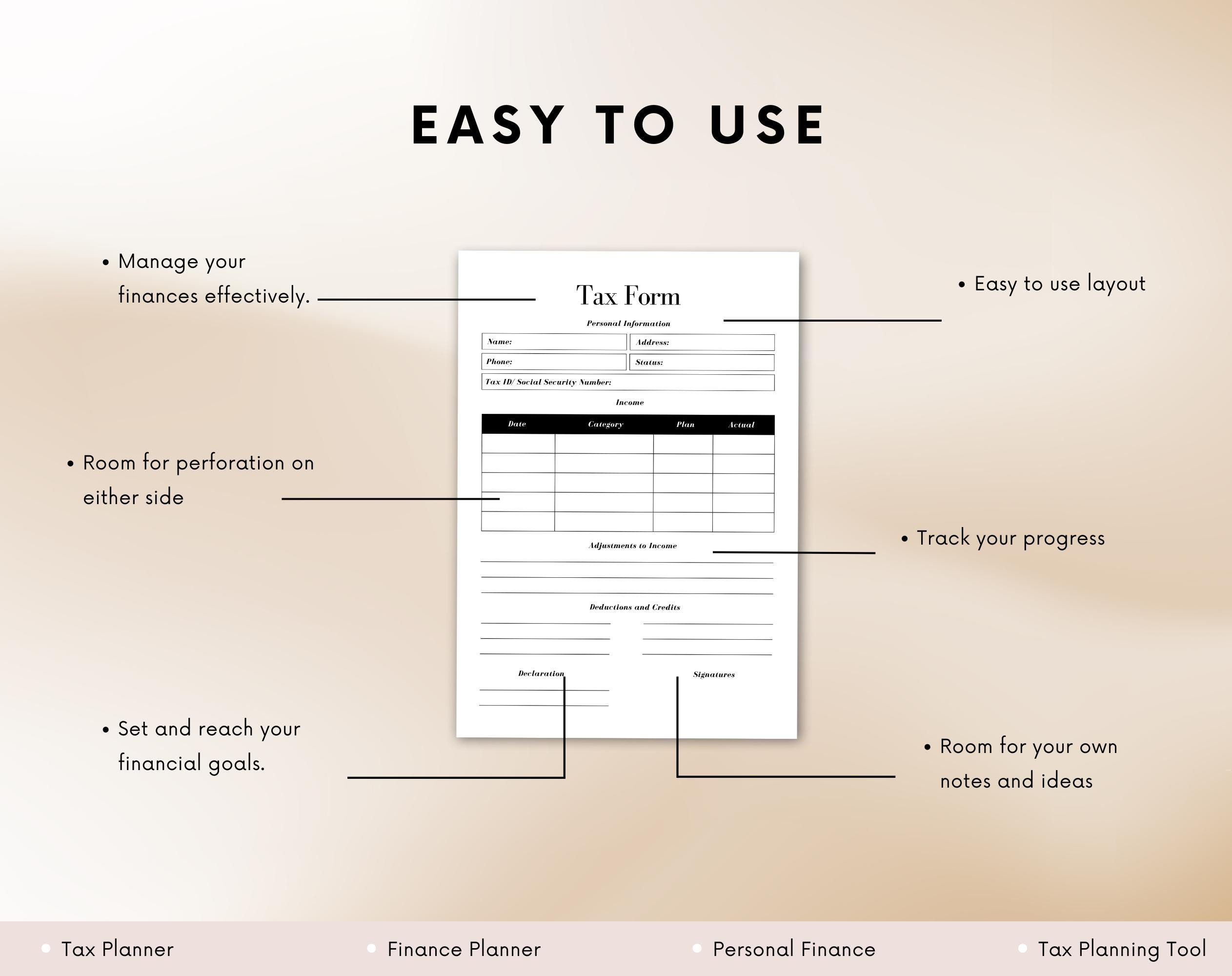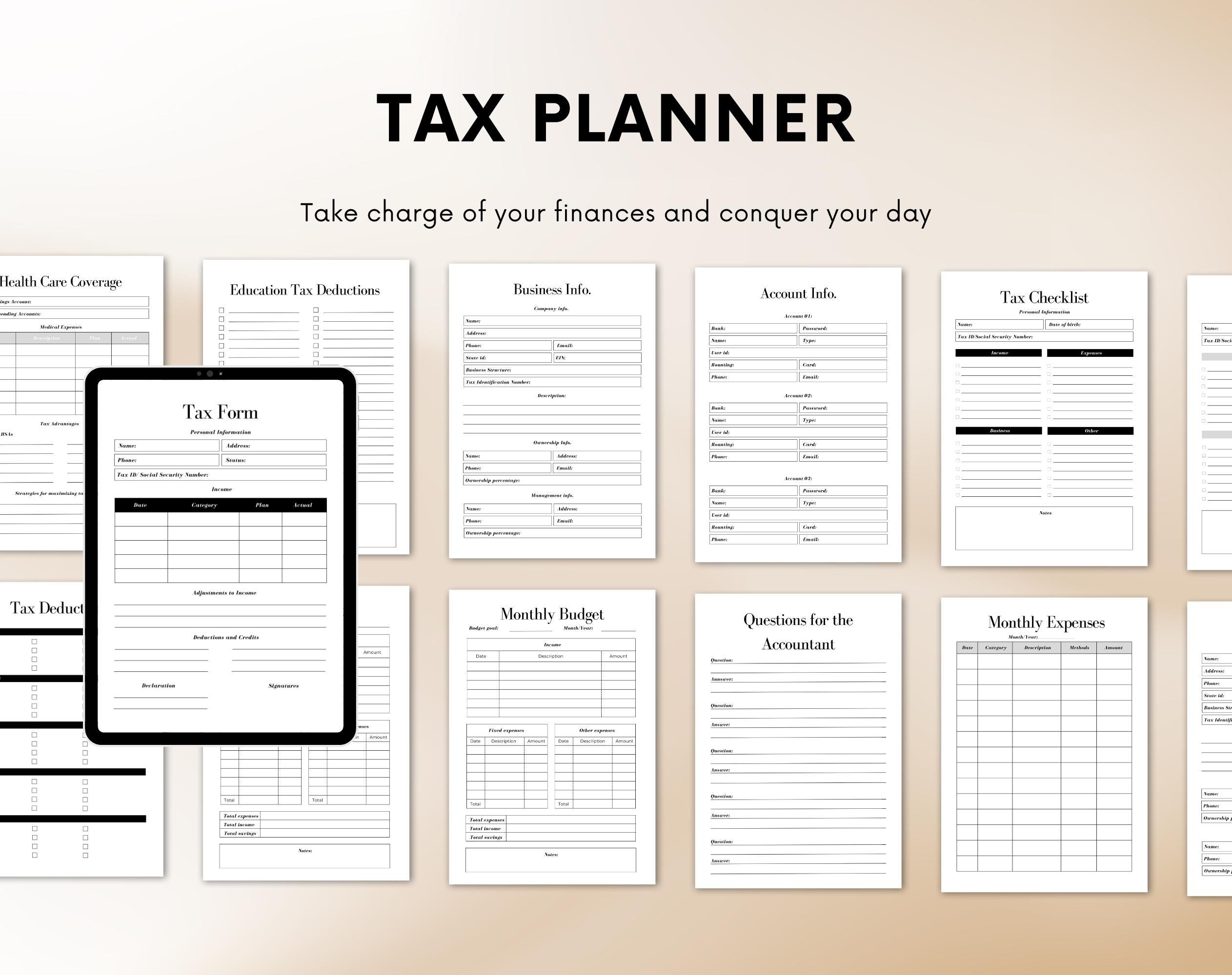 Personal Tax Planner | Tax Organizer | Financial Planner | Tax Checklist | Tax Return | Digital Tax Planner