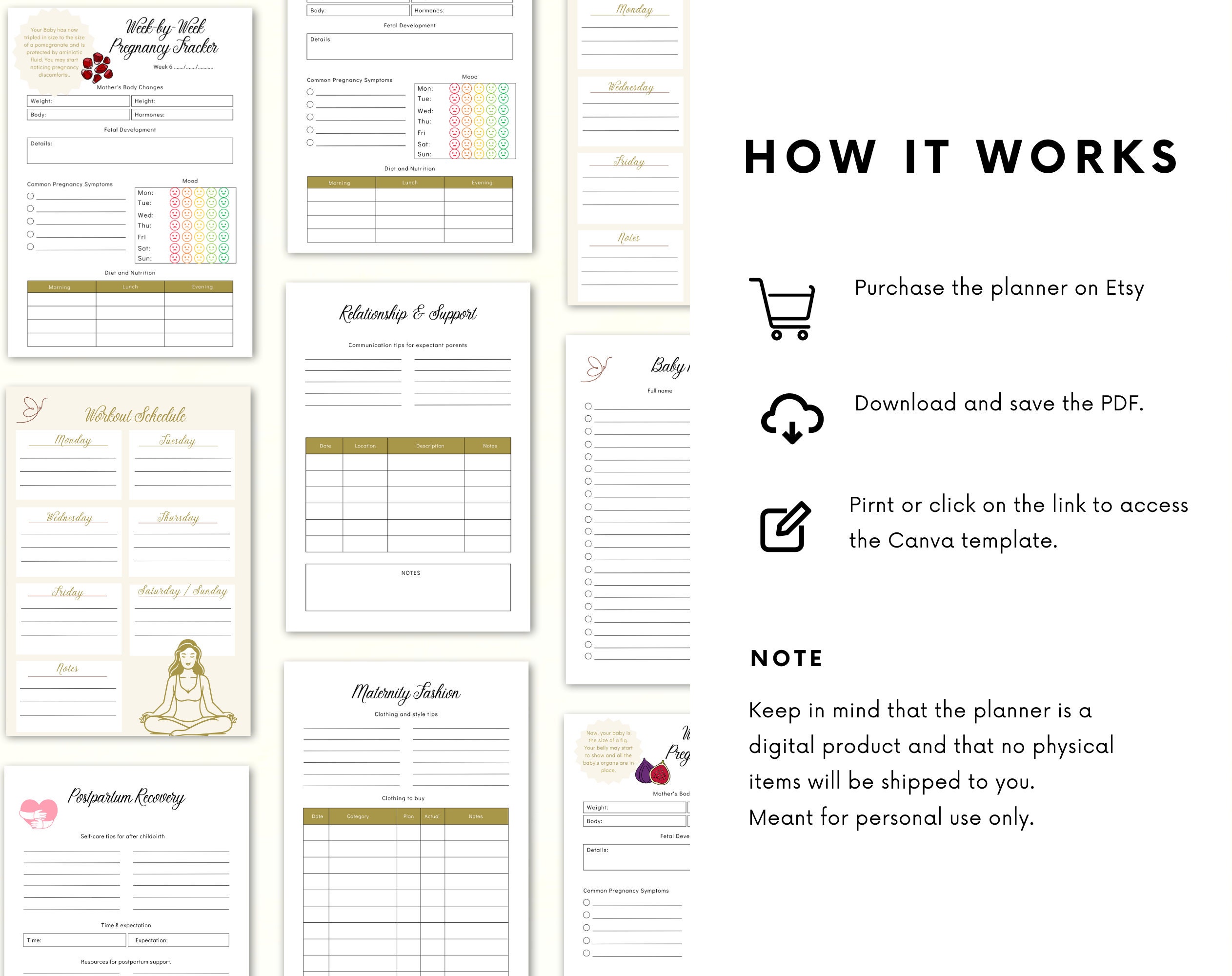 ♦ After having purchased the Ultimate Pregnancy Planner, you can download it and use it either on your laptop/tablet/computer or print it to fill it in by hand and take it with you anywhere you go!
